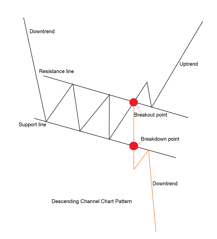 • The Descending Channel pattern acts as a strong resistance level after the breakdown of the pattern.