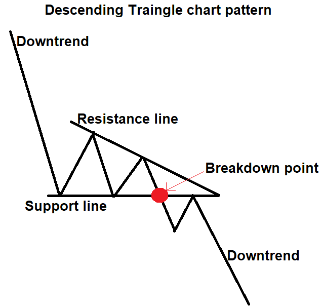 - The trendline of the Descending Triangle acts as a strong resistance after the breakout of the pattern.