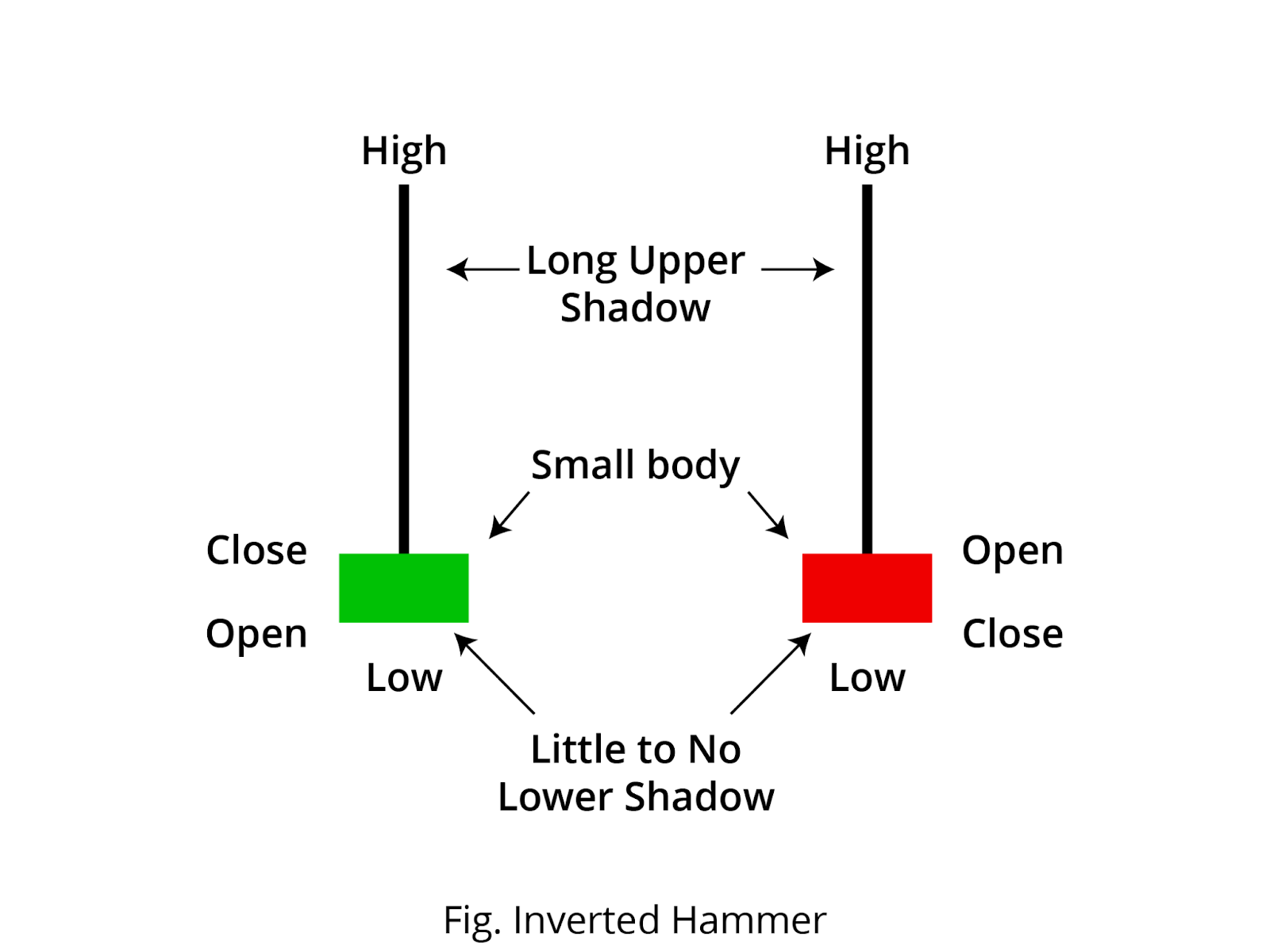 - The Inverted Hammer has a long upper shadow/wick and either no or very small lower shadow.